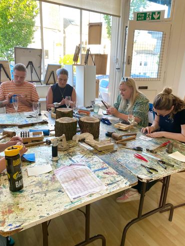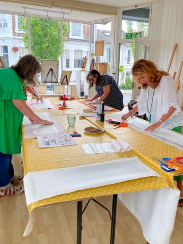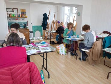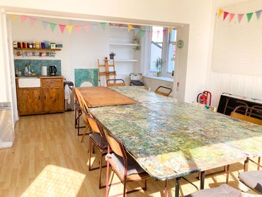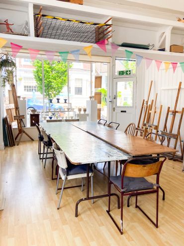 We have 4 large tables, with the capacity to fit 15 people in for a workshop. We also have 8 floor standing easels and 5 table easels and there are tea and coffee making facilities.