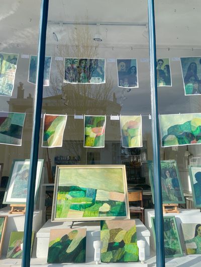 The large painting in the window is more typical of the work I usually show –